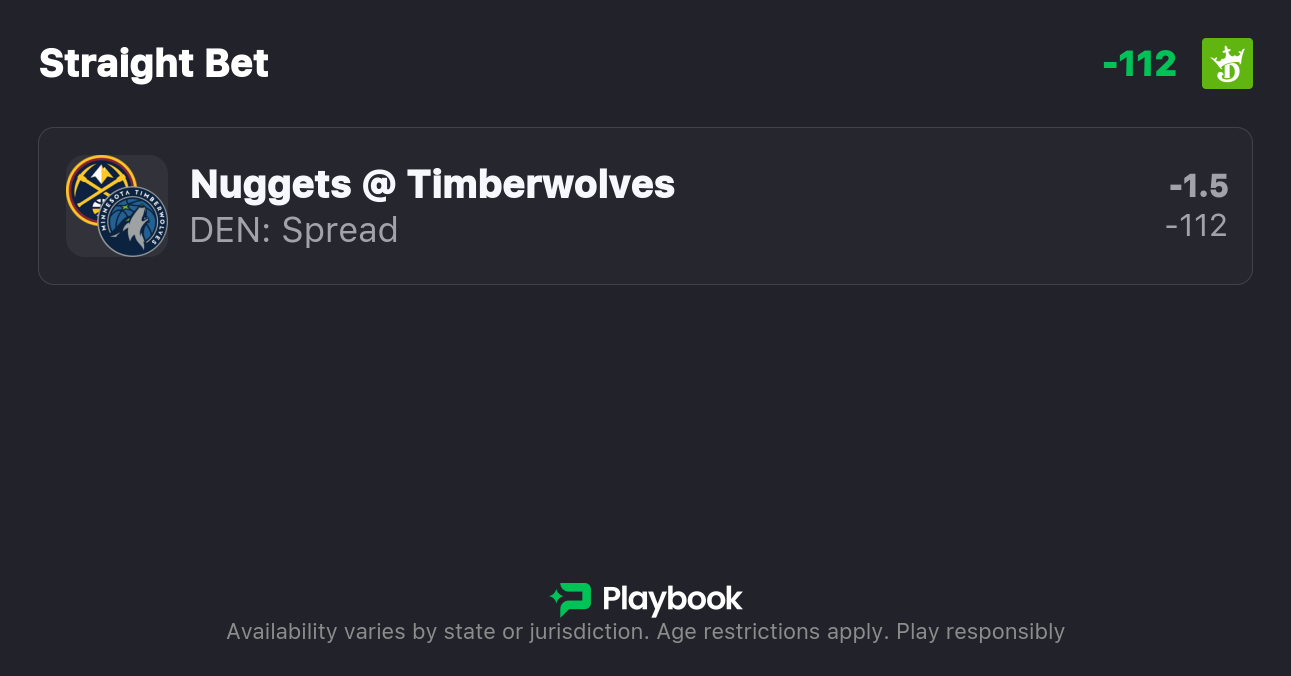- Nuggets vs Timberwolves pick: Nuggets +1.5 (-118)
