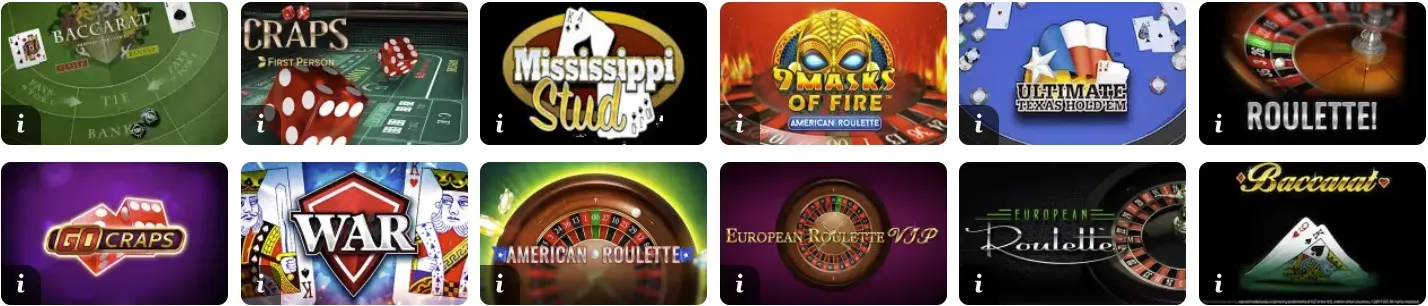 - Wide Range of Table Games
