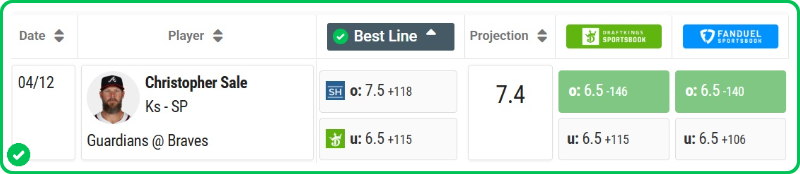 Atlanta sends out their ace, Chris Sale, for this one. Action PRO projects him for 7.4 strikeouts against the Guardians.