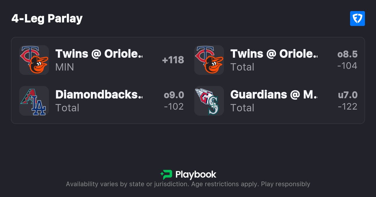 - Minnesota Twins (+130, 1u), BetMGM, bet to +115