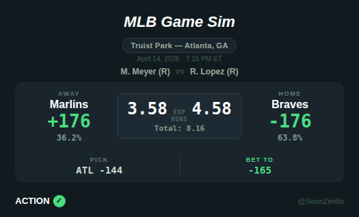 - Atlanta Braves (-144, Risk 1u), Polymarket, bet to -165