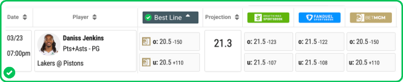 My Pistons vs. Lakers best bet is on Daniss Jenkins to combine for over 21.5 points & assists in tonight's game. Make sure to find the best odds by checking our live NBA odds page.