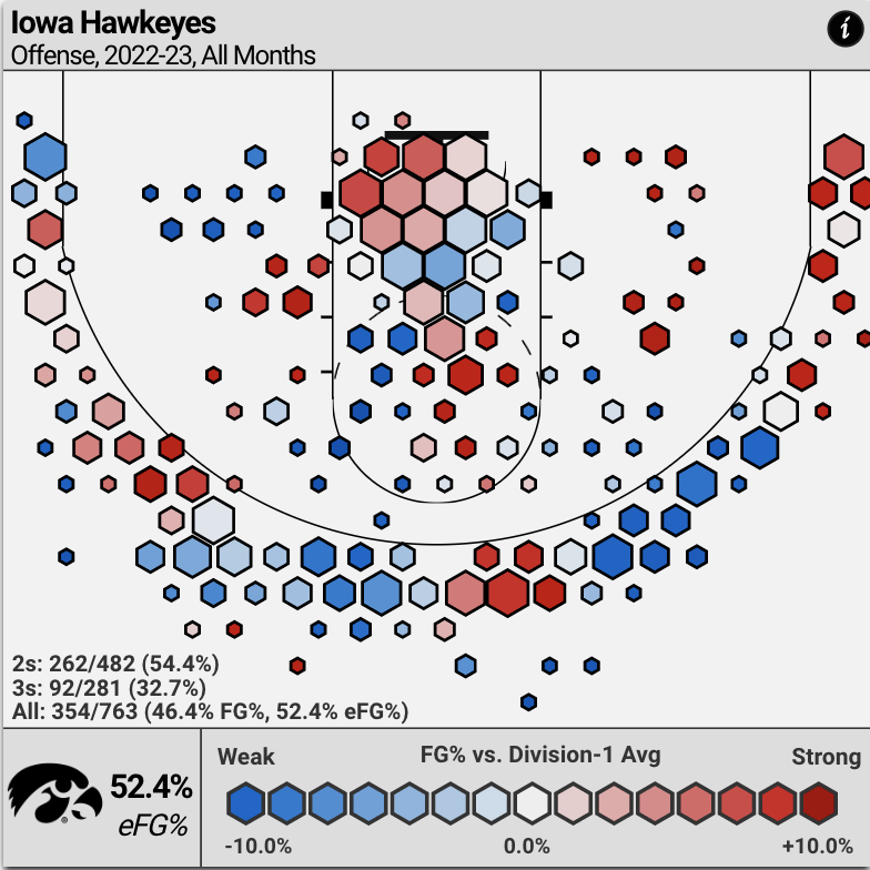 Iowa is extremely efficient on the inside, shooting 54.4% as a unit. Patrick McCaffery and Filip Rebraca are also both 6-foot-9, so they both should have some opportunities to score.