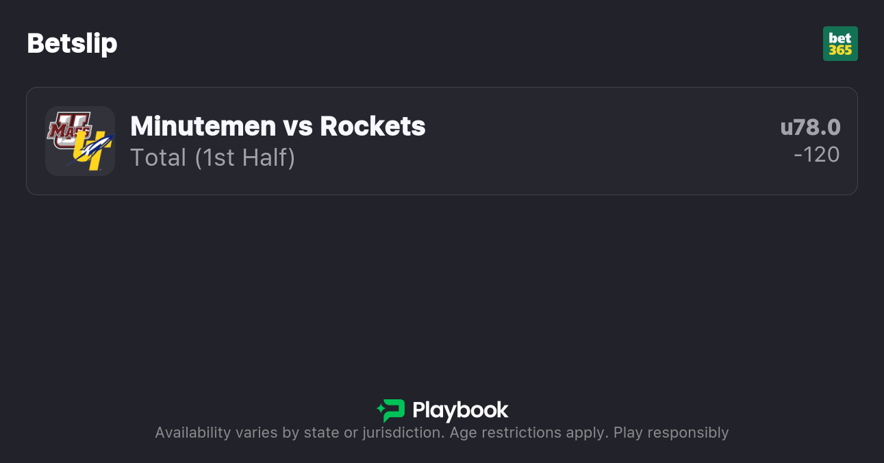 UMass is favored by 2.5 points on the spread with a moneyline of -150. The total is set at 164.5 points.