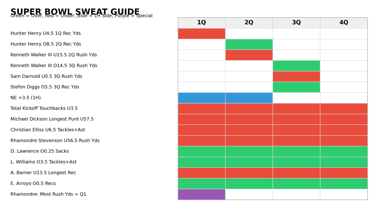 Included in my Seahawks-Patriots props are a number of quarter-specific prop bets. Here's how I'll be sweating my prop bets throughout the game: