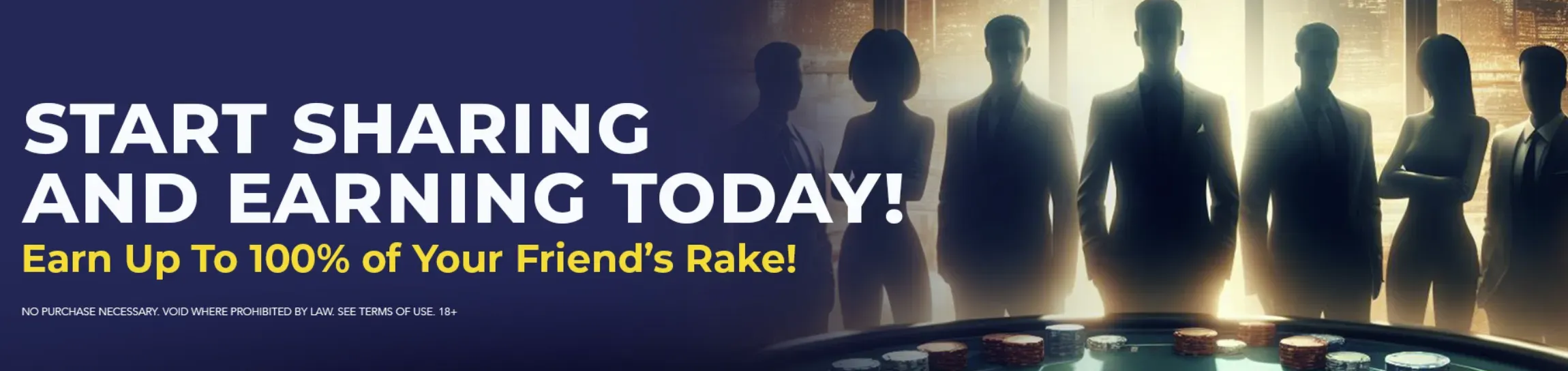 Thereβs no limit to how many friends you can refer, and the more friends you invite, the more rewards you can earn. Players can earn up to 100% of their referred friendβs rake. Your unique referral link can be found in the Profile section of your account.